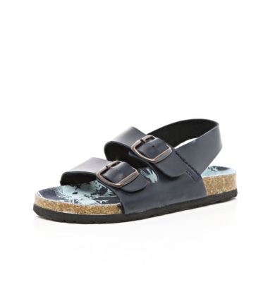 Image Name: Boys navy double strap flatbed sandals